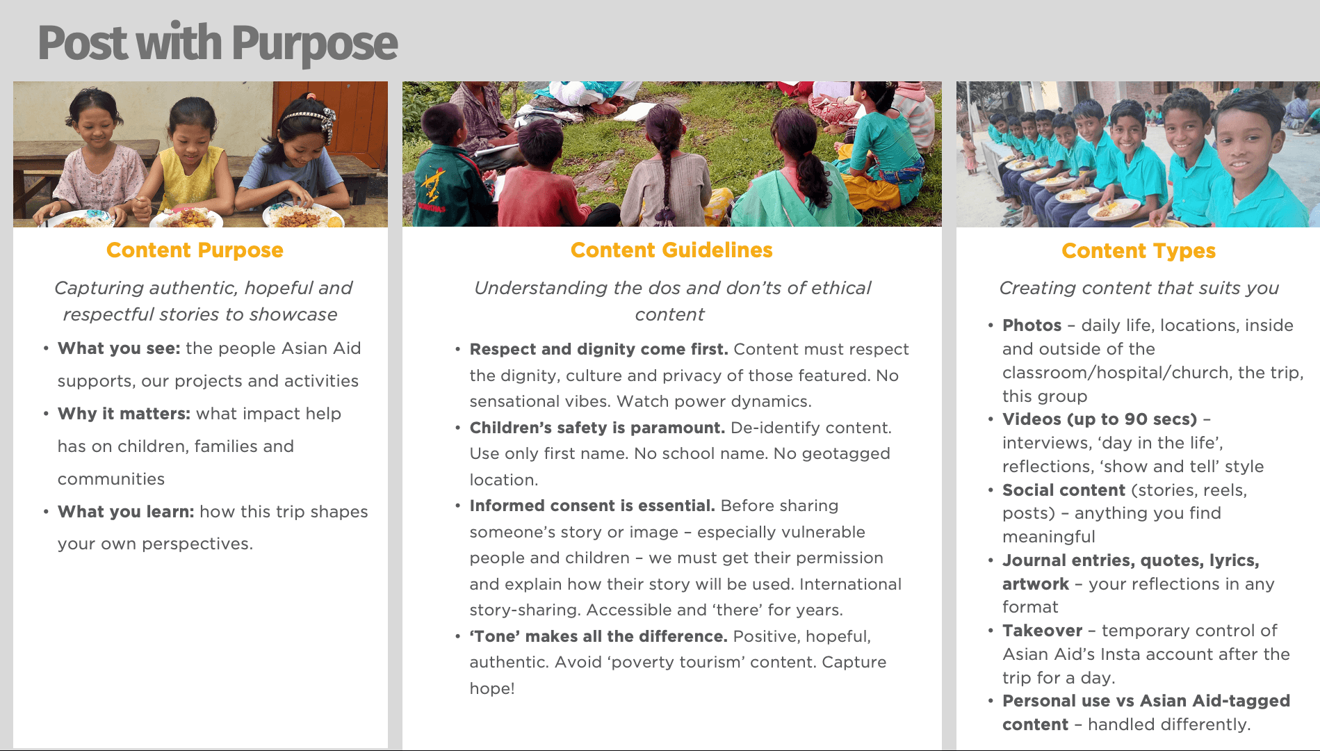 We want YOU to be inspired by actively engaging with the children and their communities that are empowered by the work of Asian Aid. Our hope is that you will return with a renewed sense of purpose to share your own stories of the real changes made possible in children’s life through what you experience.