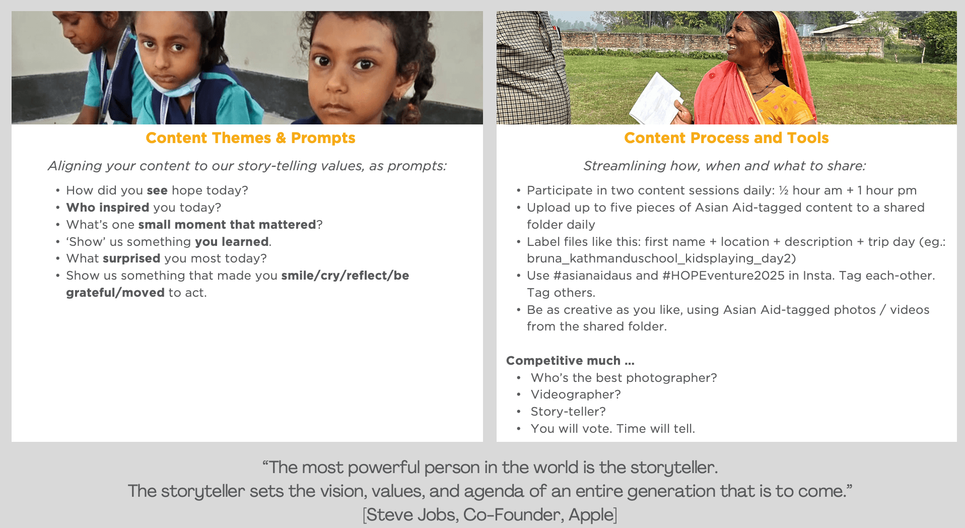• collect photos, videos and stories of impact.